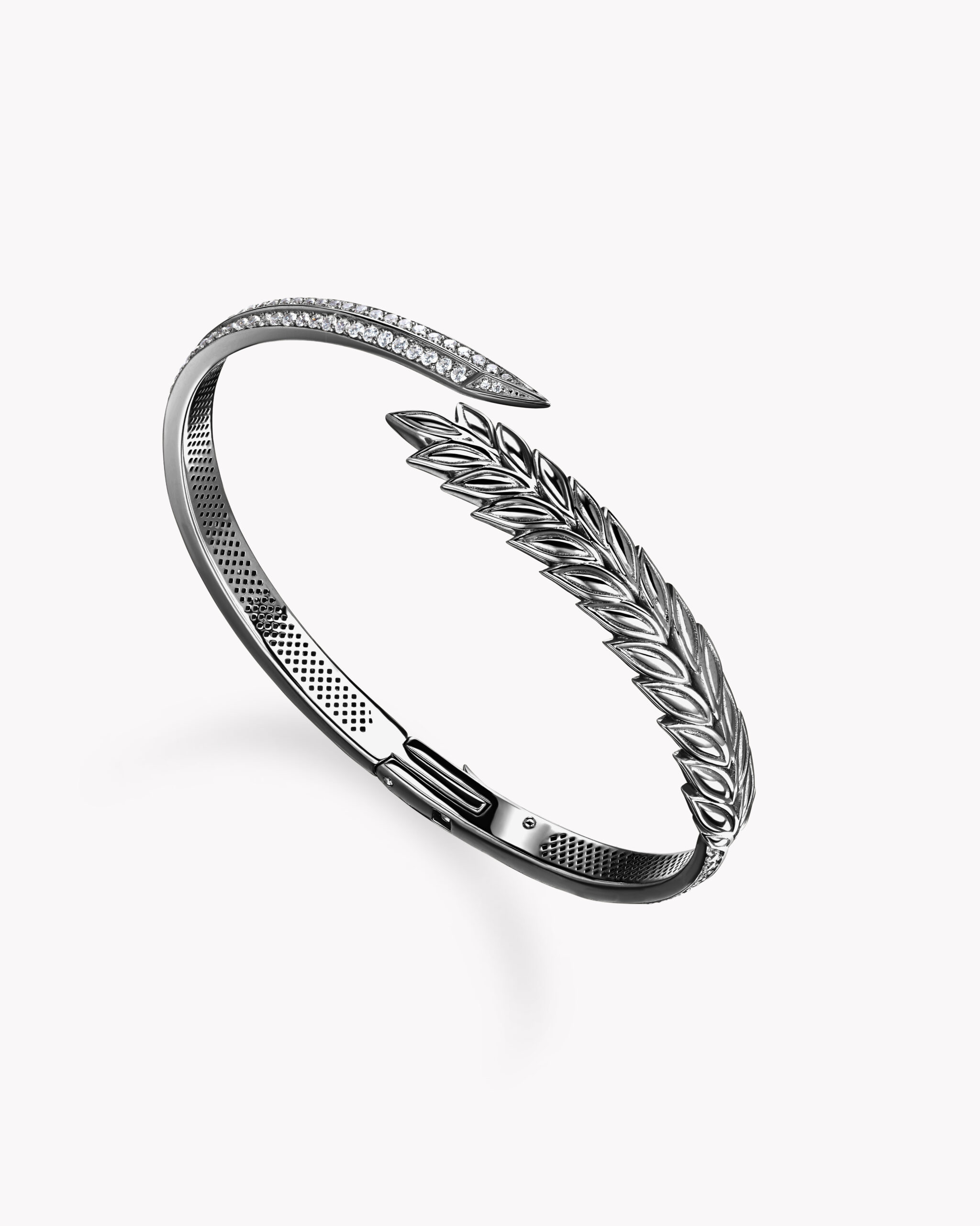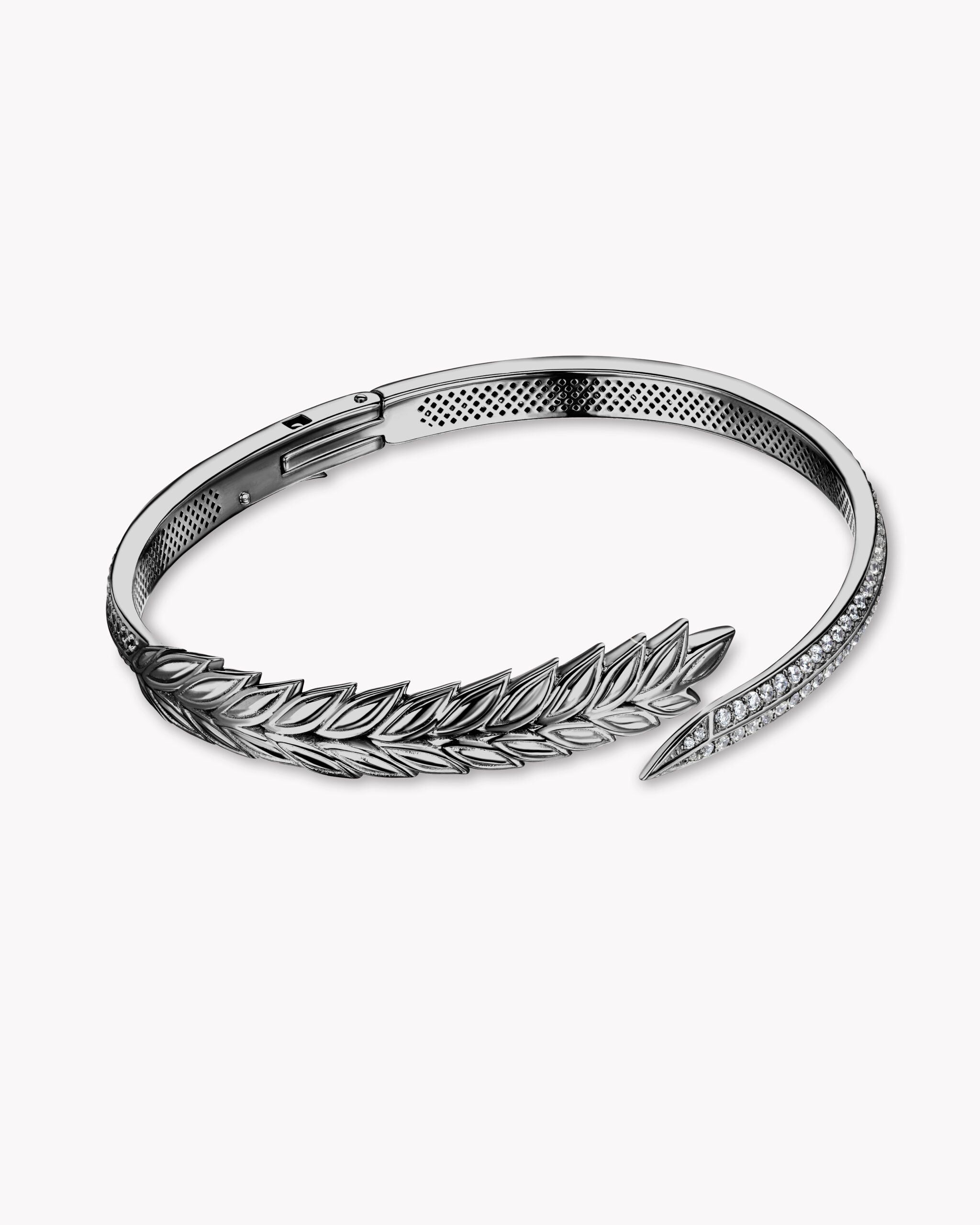 Сияние ночи и элегантность безупречности: браслет из обновленной коллекции “Колос” — бушующая сила природы, нашедшая свое воплощение в безупречном ювелирном шедевре. Дерзкое, но утонченное, украшение сочетает в себе грациозную красоту пшеничного колоса и манящую тайну символизма, смысл которой доступен только вам.