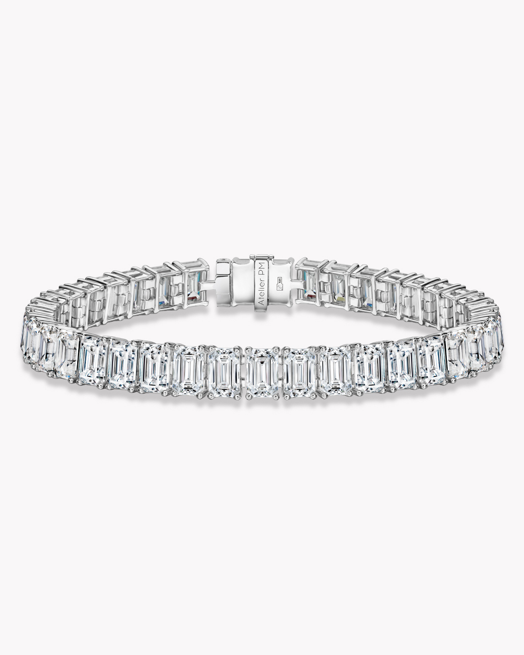 Изготовленный из белого золота 585 пробы, он притягивает внимание своим изысканным блеском и поэтической легкостью. Изумрудная огранка солирующего муассанита с ее глубоким сиянием напоминает о таинственных глубинах природы, где свет и тень переплетаются в бесконечном танце в единое целое. Лаконичный браслет станет вашим личным символом уникальности и неповторимости.