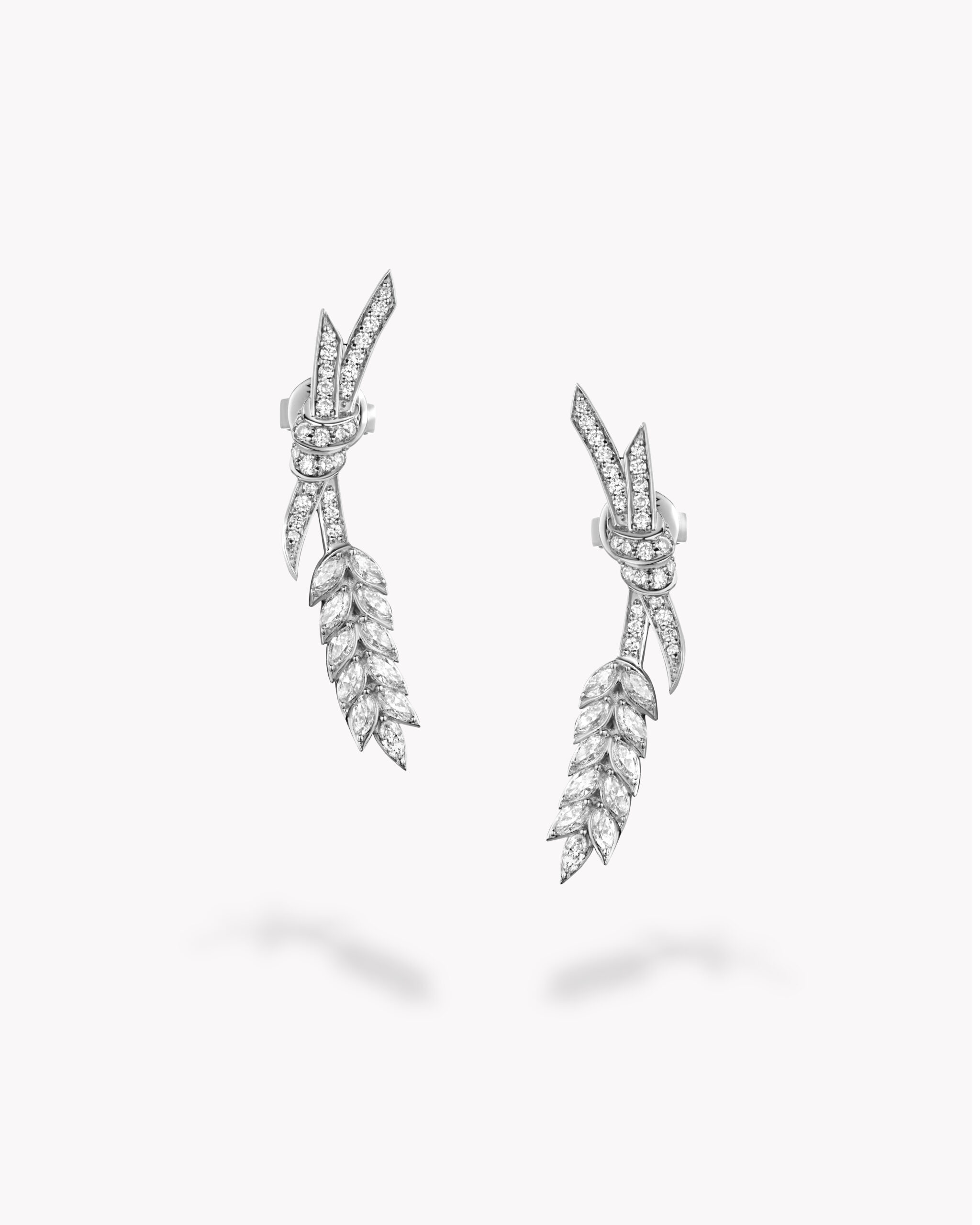 Тихая роскошь природы, застывшая в драгоценном металле. Лабораторно выращенные бриллианты огранки маркиз создают выразительные вспышки света, а круглая огранка добавляет композиции мягкое, бесконечное сияние, превращая каждое движение в игру света и тени. Лаконично вплетенные в белое золото, они будто светятся изнутри, наполняя украшение глубиной и очарованием. Серьги “Колос” — ваш личный знак роскоши, который теперь всегда с вами.