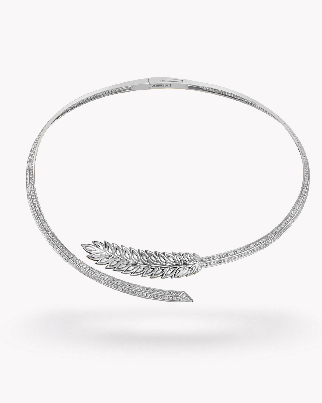 Сдержанная сила, изящные линии и сияние, не знающее компромиссов, — чокер “Колос” от Atelier PM представляет собой тонкое переплетение природных мотивов и высокой ювелирной эстетики. Вдохновленный символичностью колоса, чокер станет идеальным выбором для тех, кто выбирает не мимолетные тренды, а элегантность, которая всегда в моде.