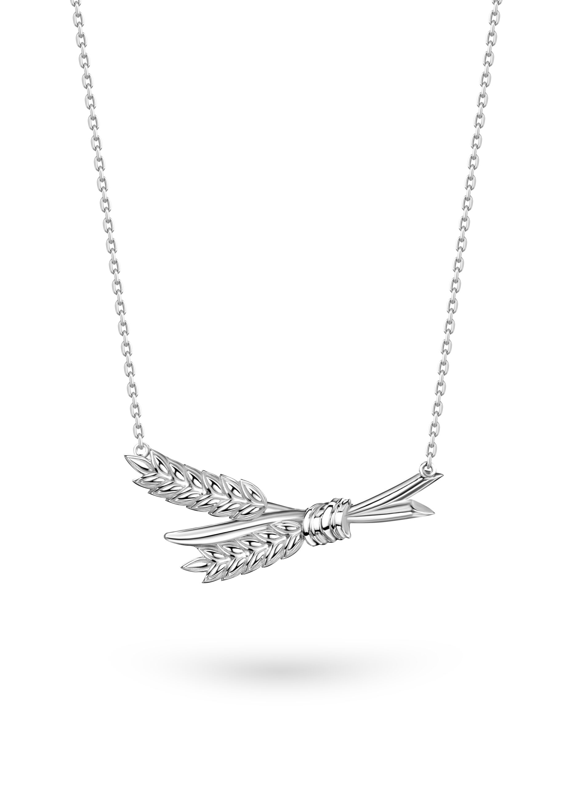 Ни капли лишнего — только холодный блеск, четкий силуэт и ясное послание: колье “Колос” — дань красоте природы, заключенной в благородный металл. Серебро 925 пробы, покрытое родием, превращает естественную форму в драгоценный символ, где легкая линия изгибов олицетворяет наполненный жизнью, светом и силой колос. Легкость металла и универсальная длина украшения делают его идеальным вариантом на каждый день.