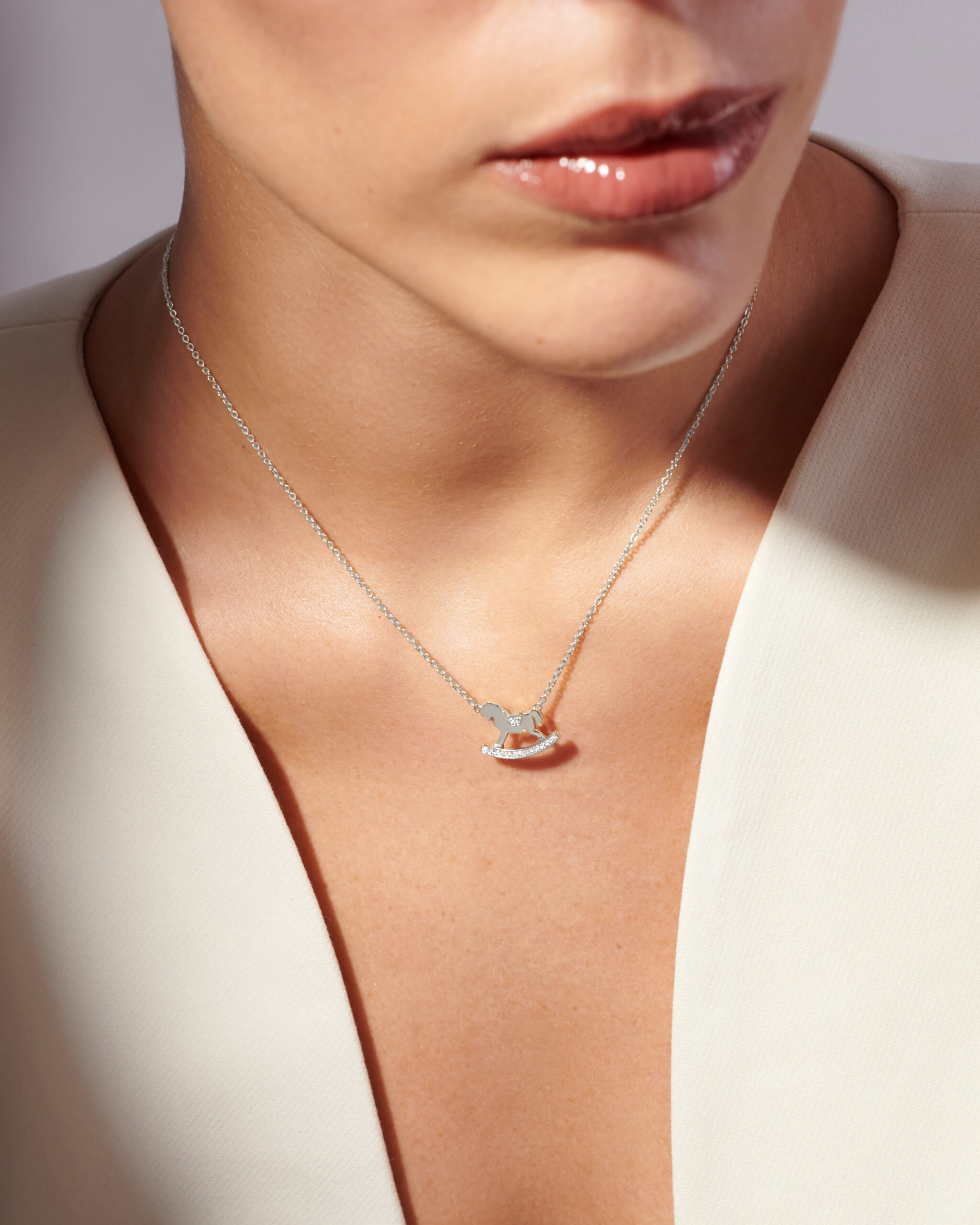 Изящное, но игривое колье TOY — ювелирное украшение, которая напоминает: радость живет в простых вещах. Это как напоминание о беззаботном детстве с его неподдельным восторгом и радостью мелочам, которые навсегда остается с нами. Белое золото 585 пробы подчеркивает прозрачность лабораторно выращенных бриллиантов, наделяя их более холодным, графичным, почти скульптурным звучанием. При этом украшение не выглядит недоступным: благодаря правильной композиции оно будто балансируют на грани: идеальный выбор для тех, кто предпочитает тихую роскошь.