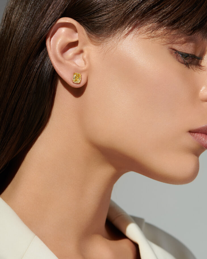 Ваше персональное солнце. Эффектные, роскошные и уникальные пусеты с желтым муассанитом Fancy Yellow. Эти серьги безупречно сидят на мочке уха, а также имеют надежный прижимной замок.