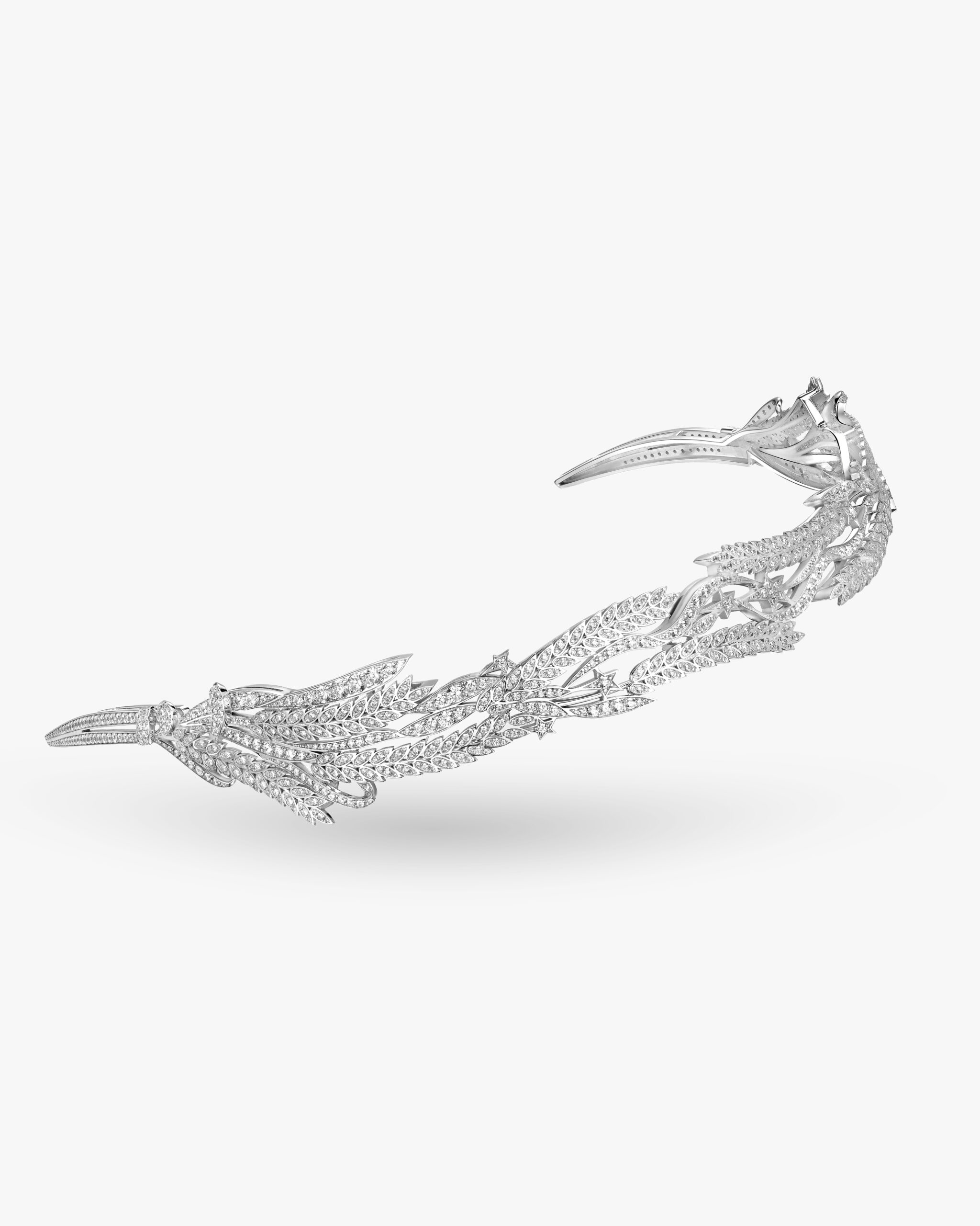 Вдохновленная формой зрелого колоса — символа изобилия, утонченности и природной гармонии — долгожданная тиара из коллекции “Колос” воплощает философию изысканной роскоши в ее лучшем виде. Создано для тех, кто ценит не только то, “что блестит”, но и глубину символики, заложенной в каждой детали.