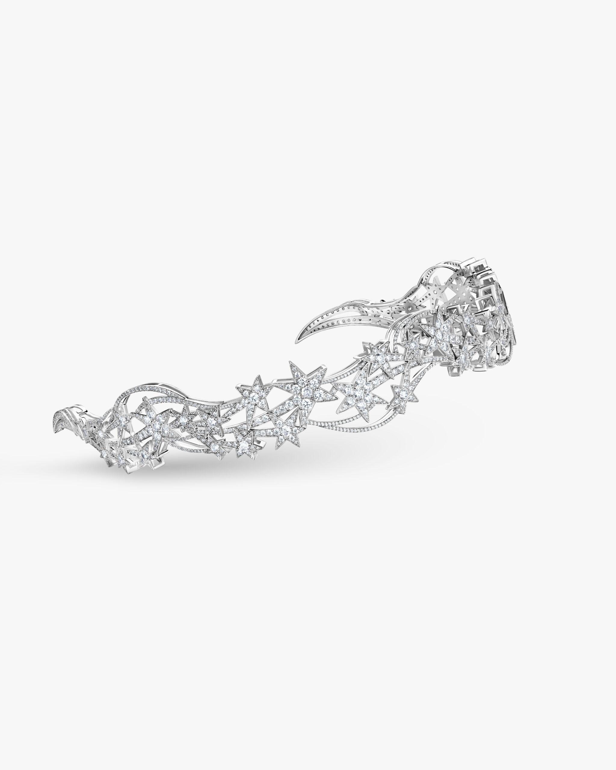 Тиара City of The Stars — ювелирная сказка, где каждая деталь хранит искру далекого и таинственного созвездия. Четкая, выверенная форма украшения становится лучшим воплощением эстетики современного величия, в котором роскошь выражается не громкостью, а безупречностью деталей и искусным мастерством исполнения.